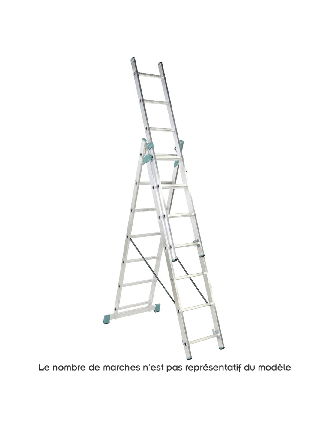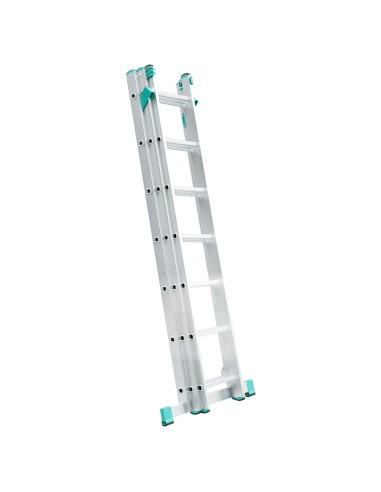 Cette échelle transformable 3 plans peut être placée sur 2 niveaux différents pour être utilisée dans les escaliers. Ses pieds sont renforcés et ses barreaux sont antidérapants. 1 plan peut être séparé des 2 autres du modèle 7 marches au modèle 10 marches.