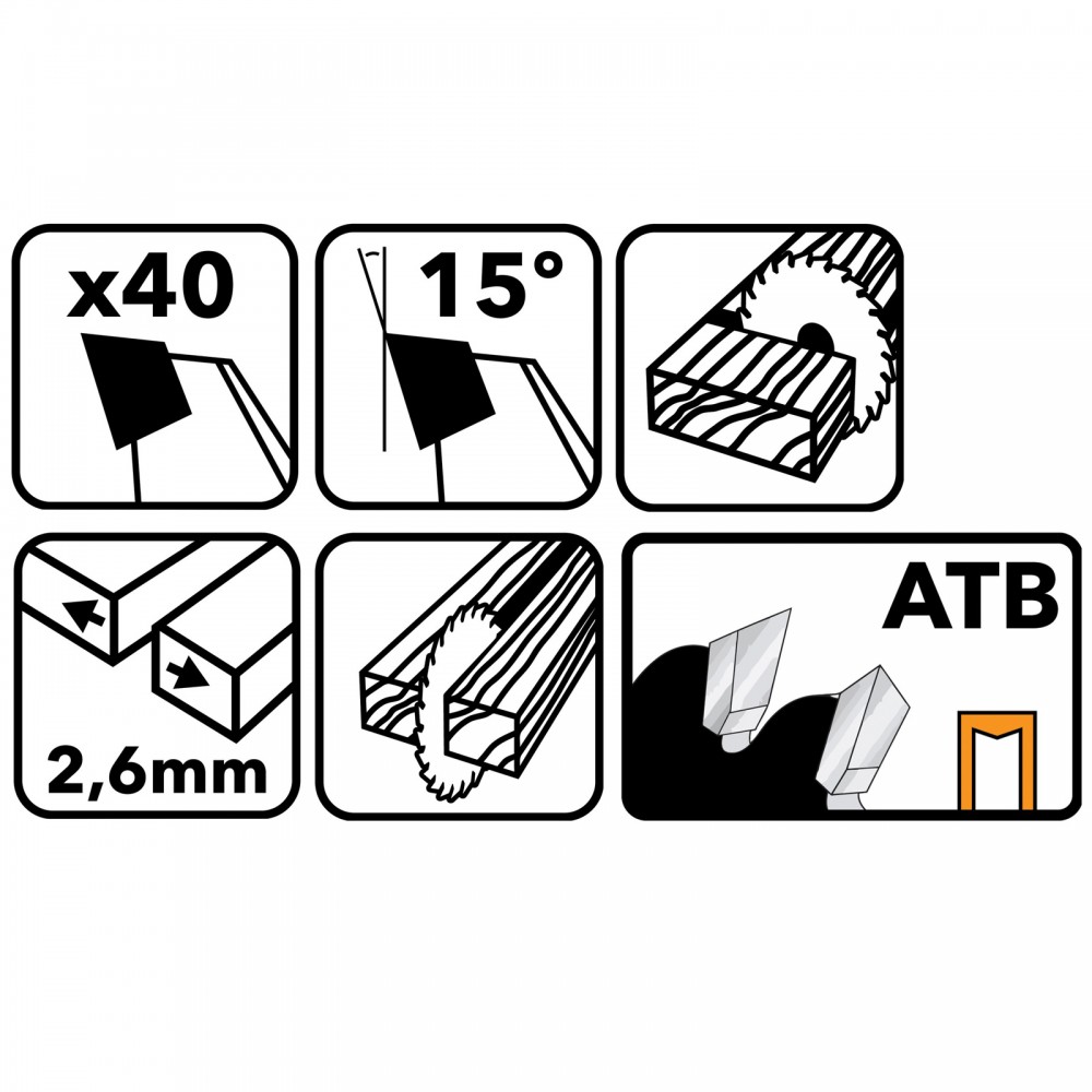 Lame 40 dents : universel, coupe longitudinale, croisée, en angle et en biseau sur le bois et matériaux tendres.