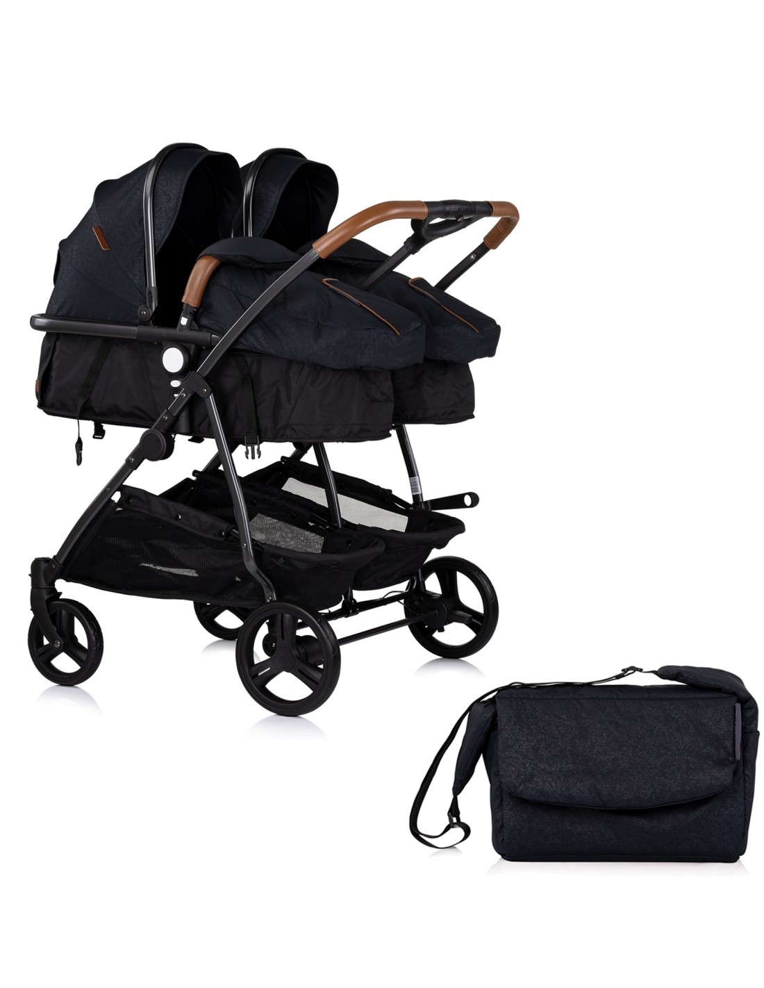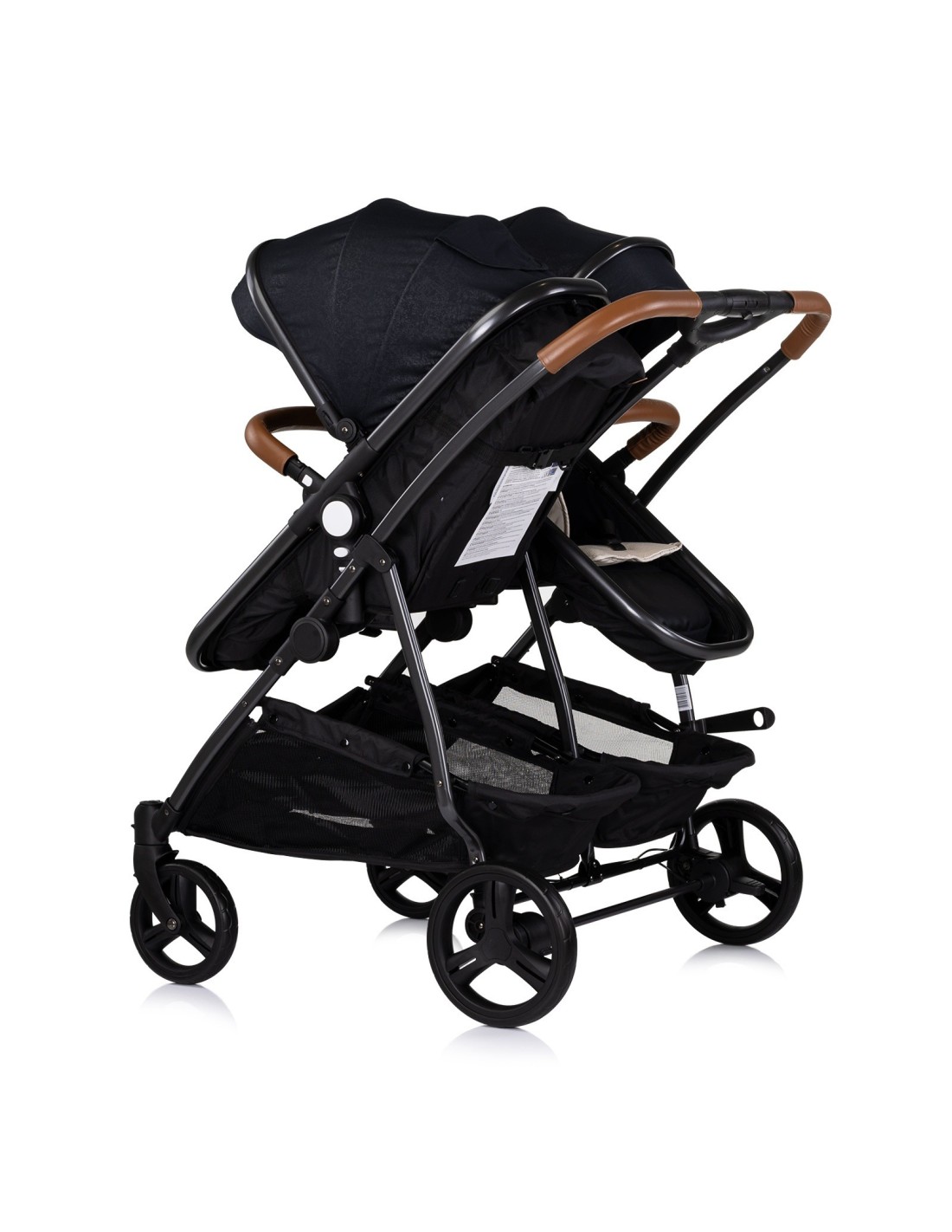 Nacelle inclinable en assise sur 3 positions. Chancelières et arceaux de sécurité amovibles. 2 paniers de rangement.
