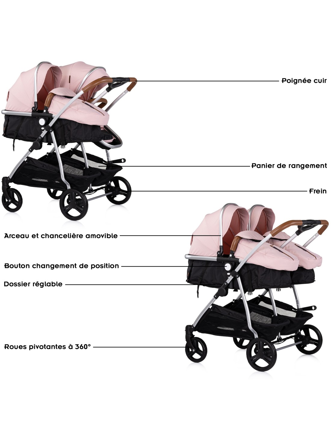 Poussette jumeaux ou enfants rapprochés avec ou sans siège auto