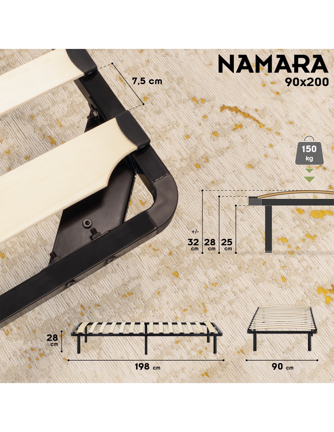 NAMARA Sommier à lattes robuste avec pieds en acier - Montage facile -